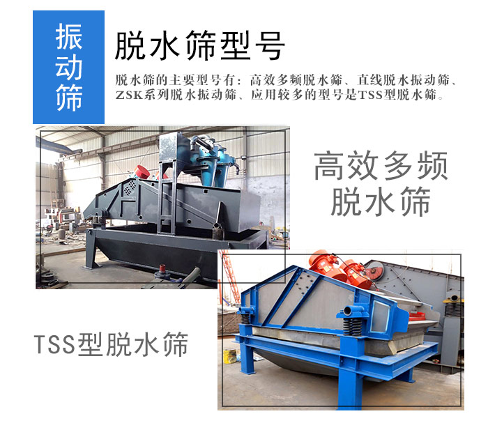 礦用脫水篩有多種類別和型號,主要有:高效多頻脫水篩、直線脫水振動篩、ZSK系列脫水振動篩、ZSM礦用脫水篩、TSS型脫水篩等,其中應用較多的型號是TSS型脫水篩
