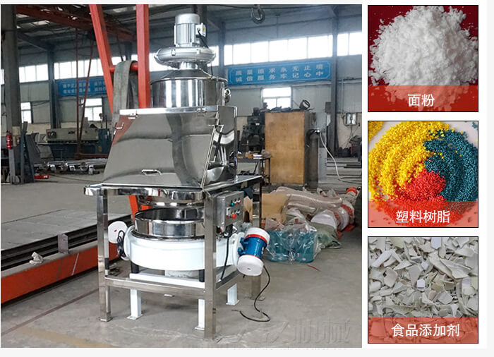 無塵投料站實現無塵投料、上料,解決粉塵飛揚問題:利用高壓氣管向內打氣使投料室的布袋膨脹,再利用集塵風機抽取吸附在布袋表面上的灰塵,從而實現對飛塵的吸附。可根據需求配合振動篩分設備,輸送設備,以及其它的工藝設備進行使用。